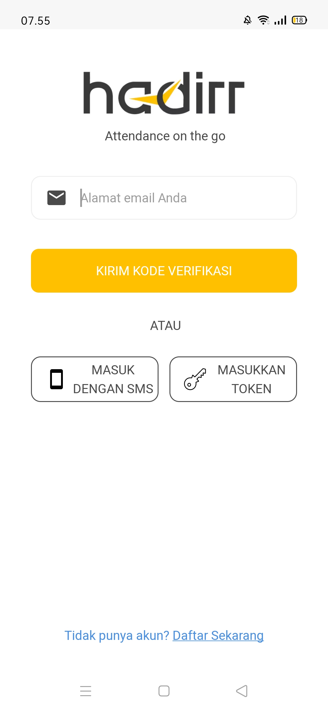 Tampilan dalam aplikasi “Hadirr” di ponsel dengan sistem operasi Android secara keseluruhan serupa dengan ponsel yang menggunakan sistem operasi IOS. Untuk langkah selanjutnya bisa disesuaikan dengan panduan yang saya buat menggunakan Android.